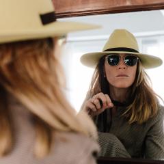 Use and care: the hat is treated to withstand the sun and rain, however do not leave it exposed to the sun for a long time indoors (car or sunny window). Do not wash the hat with water, dust it using a kneaded rubber, an adhesive roller or a cleaning wipe, gently brushing it.