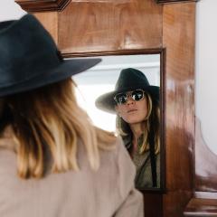 Use and care: the hat is treated to withstand the sun and rain, however do not leave it exposed to the sun for a long time indoors (car or sunny window). Do not wash the hat with water, dust it using a kneaded rubber, an adhesive roller or a cleaning wipe, gently brushing it.