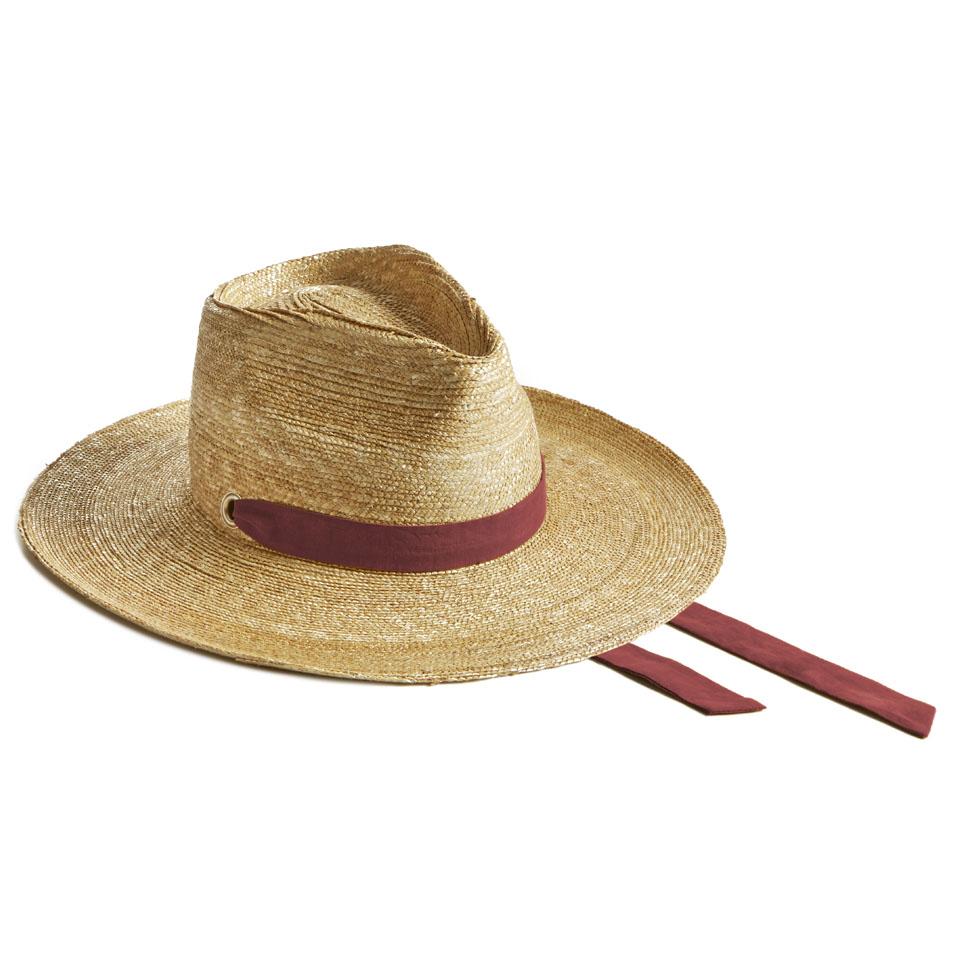 Cappello in paglia 100% naturale interamente intrecciata e cucita a mano. Falda semi rigida, medio larga. Nastro 100 % cotone, colore bordeaux. Personalizzabile con iniziali all’interno o sul nastro.